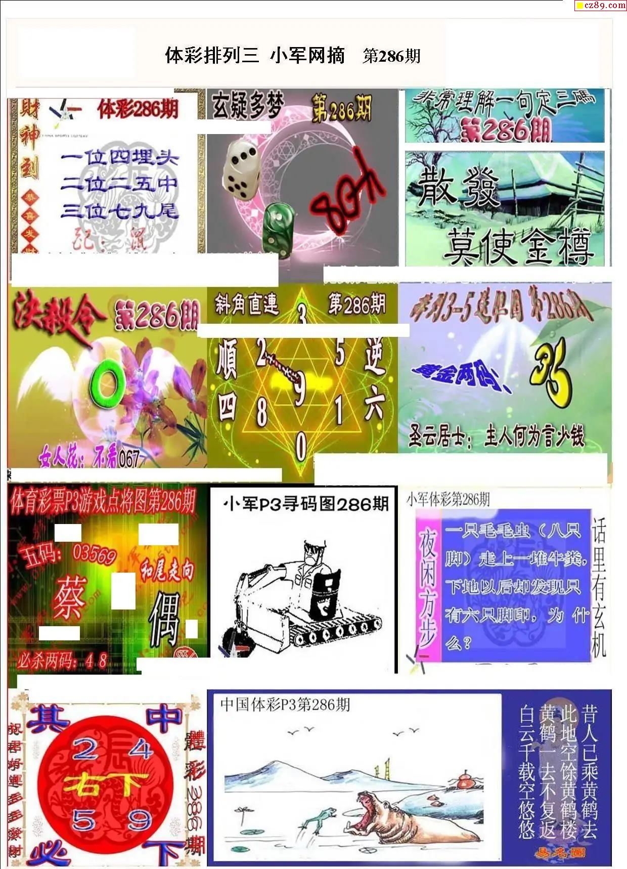 小军网摘25年286期体彩P3彩报图谜