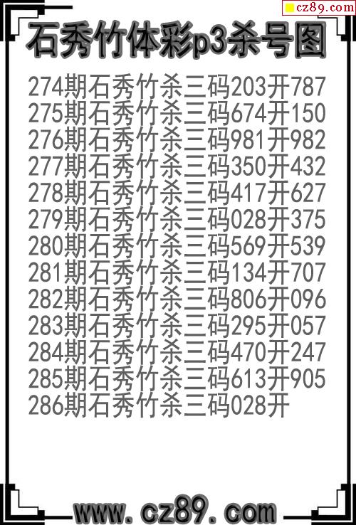 > 25年286期石秀竹体彩p3杀号图